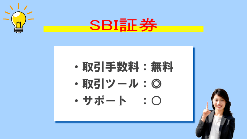 ネット証券最大手のSBI証券。100万円までの手数料無料はもちろん、取扱銘柄の多さも魅力です。